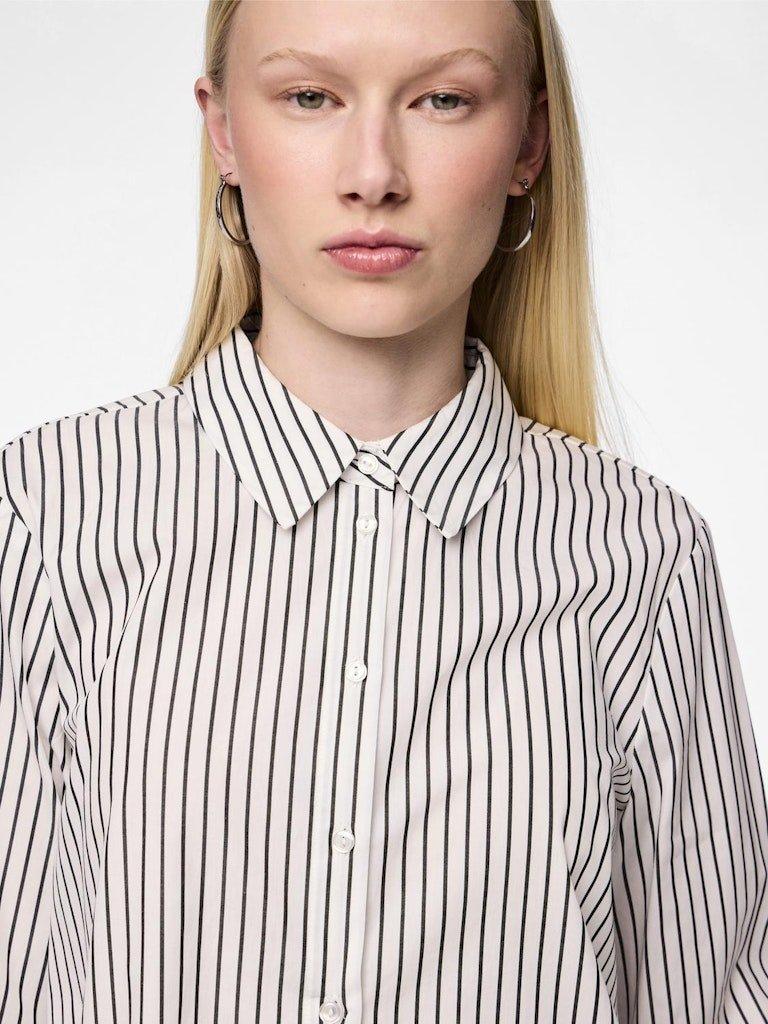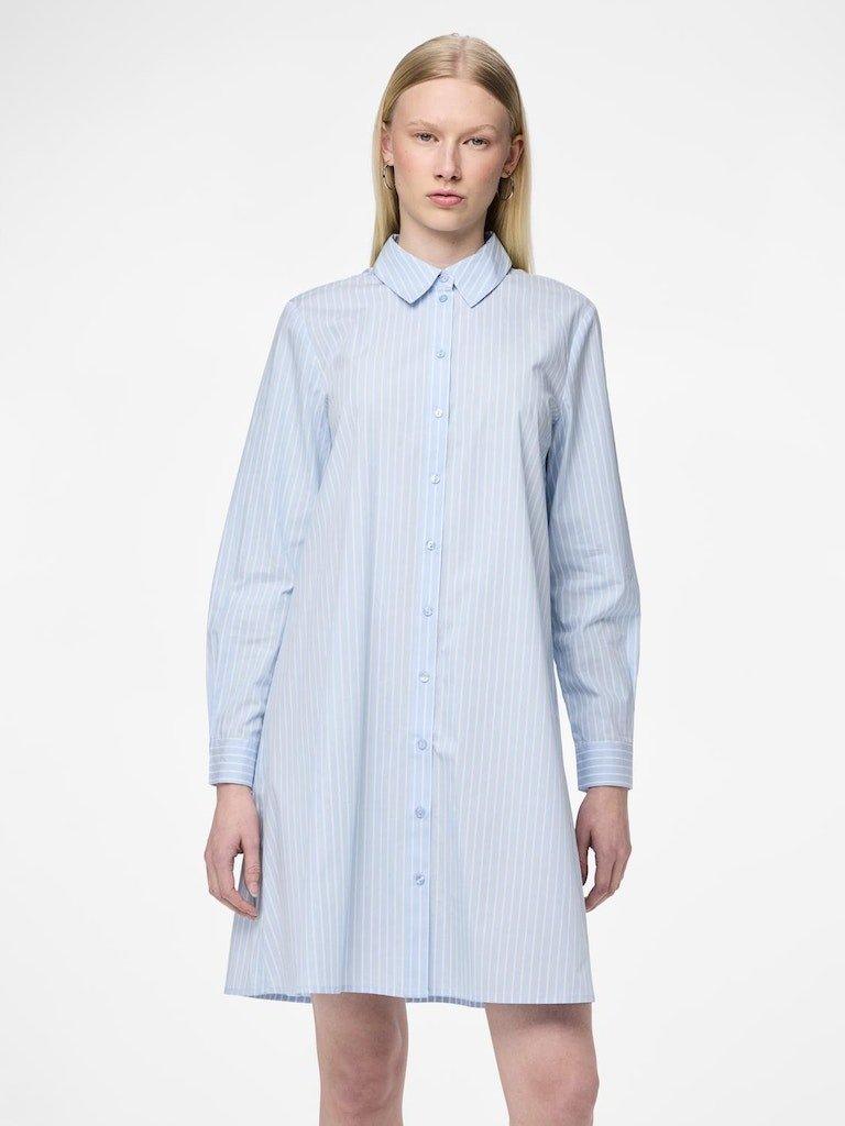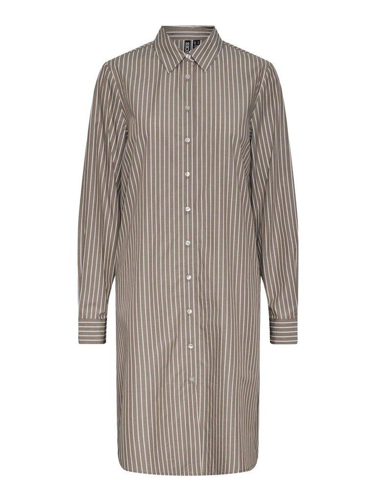 Kort langærmet skjortekjole fra Pieces med striber. I loose fit.